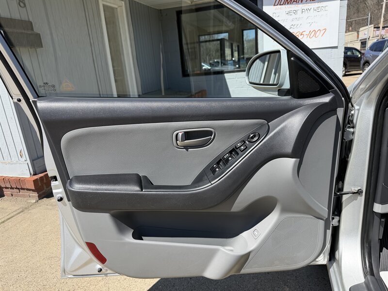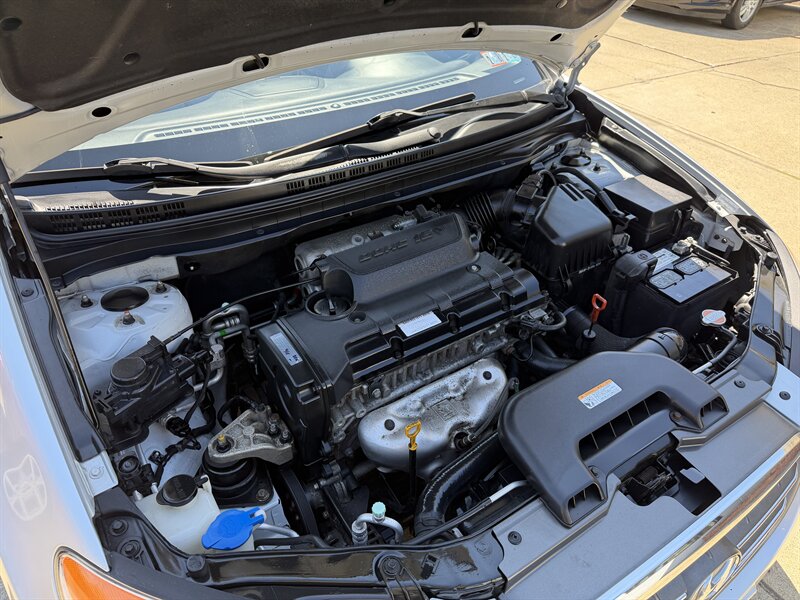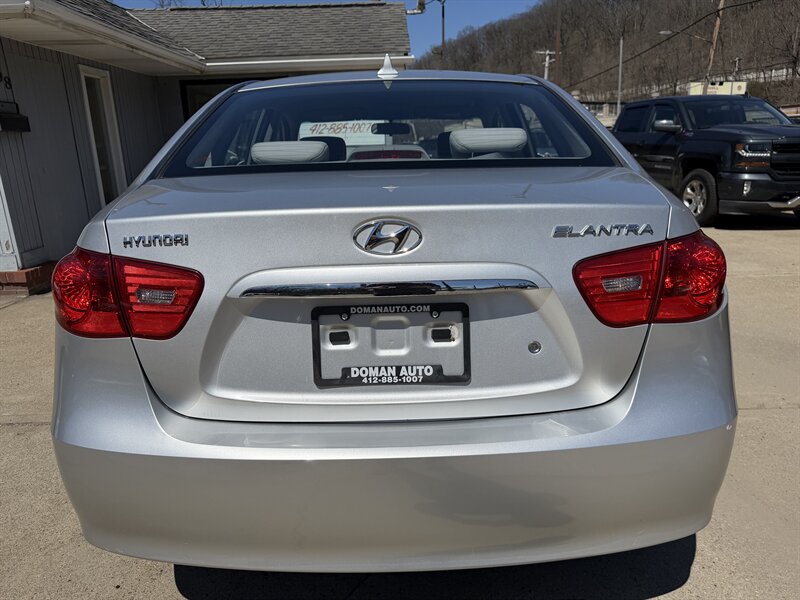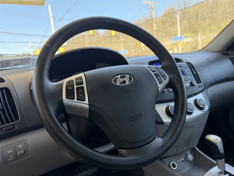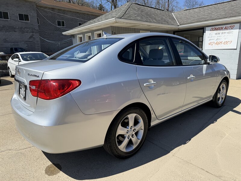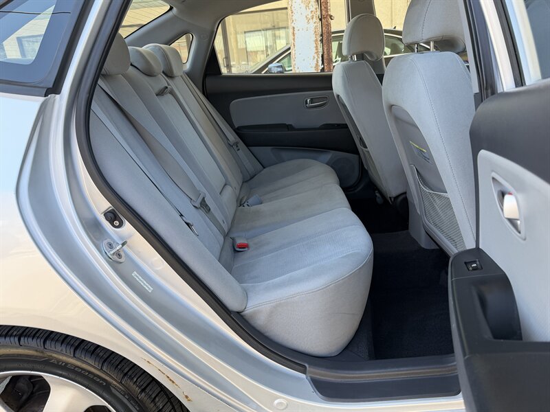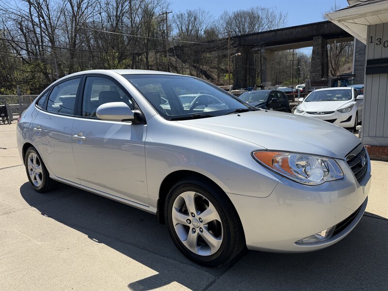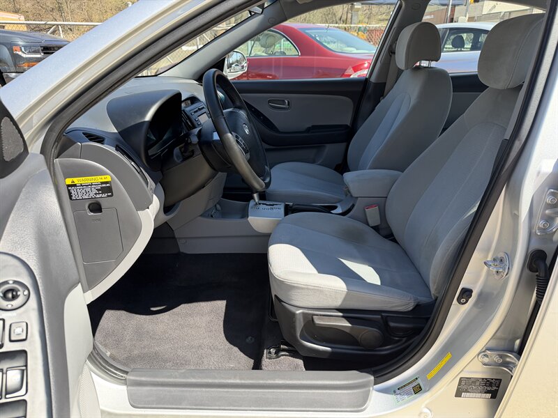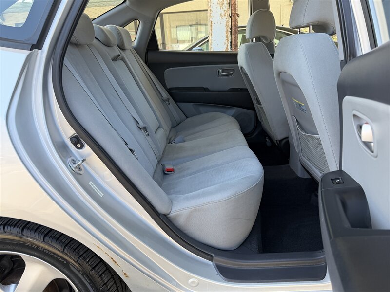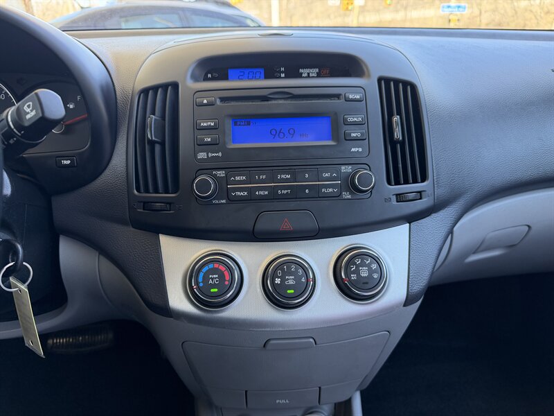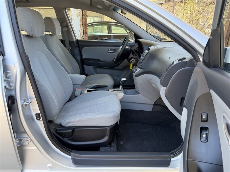2009 Hyundai Elantra SE in Quicksilver with a Gray cloth interior. Powered by a 2.0L I4 engine producing 138 hp and 136 lb-ft of torque. Factory equipment includes air conditioning, cloth seating, power windows and door locks, power mirrors, remote keyless entry, cruise control, AM/FM/CD/MP3 audio with auxiliary input, tilt steering, split-folding rear seat and 16-inch alloy wheels. Standard safety features include front and side-impact airbags and full-length curtain airbags with anti-lock brakes. Below 111,000 miles (averaging under 7,000 miles per year) and rated at 25 MPG city / 33 MPG highway.