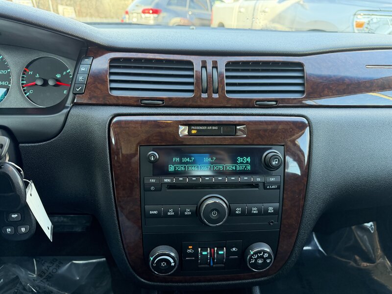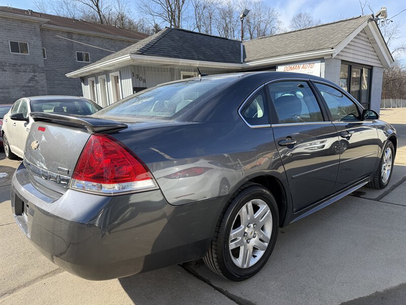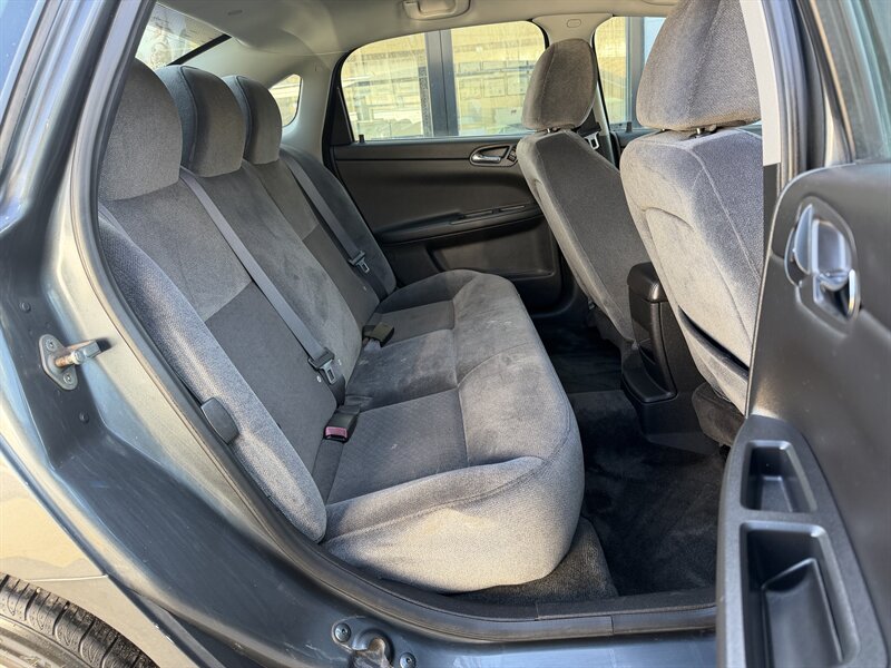 2011 Chevrolet Impala LT with a 3.5L FlexFuel V6 producing 211 hp and 216 lb-ft, flex-fuel capable (E85). Exterior Gray with a Black interior; well-maintained and under 106,000 miles (averaging less than 7,000 miles per year). Factory equipment includes an automatic transmission, power windows and door locks, remote keyless entry, air conditioning, cruise control, tilt/telescoping steering wheel with audio controls, AM/FM/CD/MP3 audio with auxiliary input, cloth seating with 60/40 split-folding rear seat, power-adjustable driver’s seat, alloy wheels, OnStar, dual front airbags, side-impact and full-length head curtain airbags, ABS, traction control, electronic stability control and tire pressure monitoring.