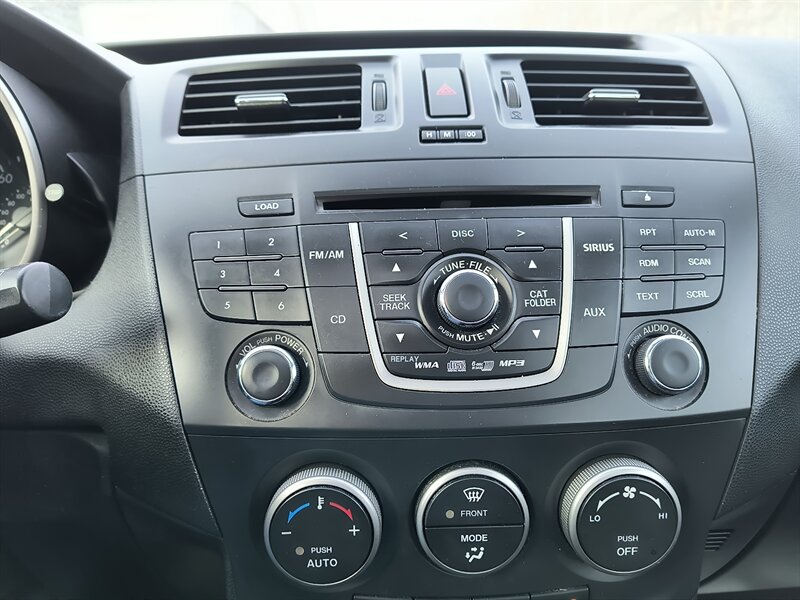 2012 Mazda Mazda5 Grand Touring in Metropolitan Gray Mica with a Black interior, powered by a 2.5L I4 producing 157 hp and 163 lb-ft of torque. Factory-equipped features include leather-trimmed front seats with heating, power moonroof, dual sliding rear doors, roof rails, 17-inch alloy wheels, fog lights, automatic climate control, cruise control, keyless entry, Bluetooth hands-free and audio streaming, steering-wheel audio/phone controls and a multi-source audio system with auxiliary/USB inputs. Standard safety and convenience items include ABS, electronic stability and traction control, front side-impact and side-curtain airbags, and tire-pressure monitoring. EPA fuel economy is 21 MPG city / 28 MPG highway.
