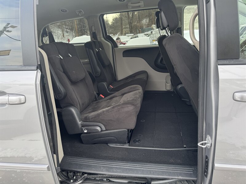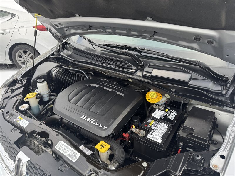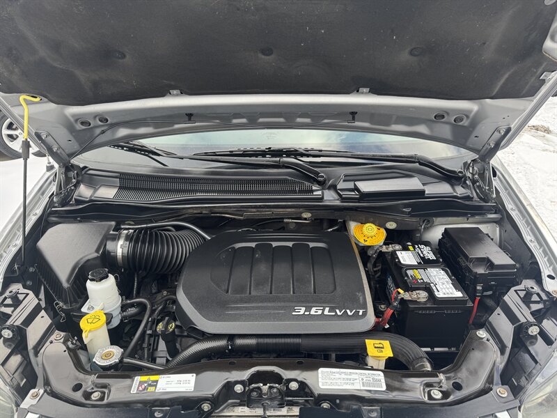 2014 Dodge Grand Caravan SXT with the Pentastar 3.6L Flex Fuel V6 (283 hp, 260 lb-ft); Billet Silver Metallic Clear Coat exterior and Black interior. Factory-standard equipment includes Stow ’n Go seating for flexible passenger/cargo layouts (seats fold into the floor), seating for up to seven, power front windows and door locks, remote keyless entry, cruise control, tilt steering with steering-wheel audio controls, and an AM/FM stereo with auxiliary/USB inputs and Uconnect integration. Safety and drivability features include anti-lock brakes (ABS), electronic stability and traction control, and multiple airbags (front and side-curtain). under 87,000 miles — averaging less than 7,000 miles per year.