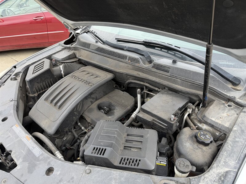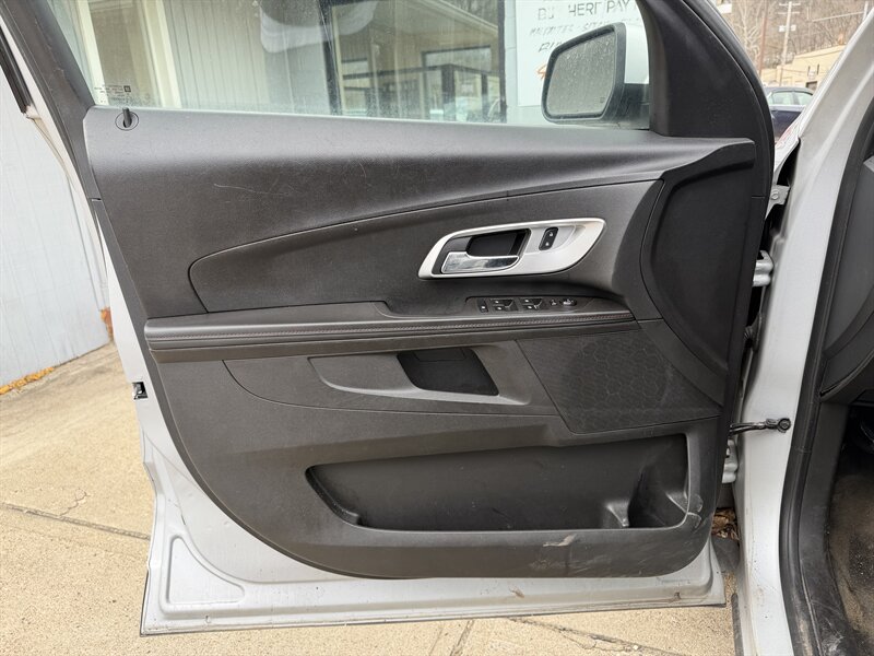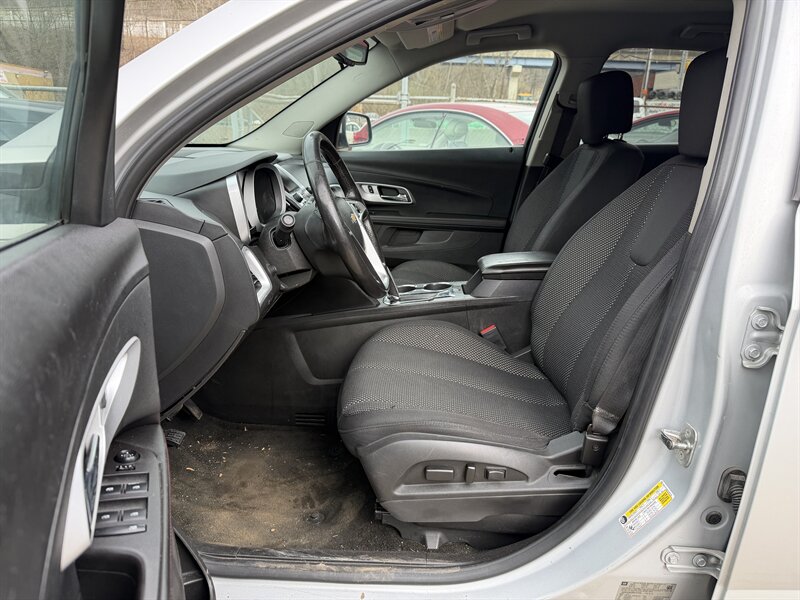 2015 Chevrolet Equinox LT in Silver with a Black interior, powered by the 2.4L I4 producing 182 hp and 172 lb-ft of torque, rated at approximately 20 MPG city / 29 MPG highway. Factory equipment on the LT includes alloy wheels, remote keyless entry, power windows and door locks, cruise control, air conditioning, cloth seating, a power-adjustable driver seat, a 60/40 split-folding rear seat for added cargo flexibility, and steering-wheel mounted audio controls. Infotainment and convenience features include AM/FM audio with USB/AUX inputs and Bluetooth hands-free phone and audio streaming (Chevrolet MyLink touchscreen available on some builds); safety systems include multiple airbags, antilock brakes (ABS), traction control, electronic stability control and a rear vision camera.