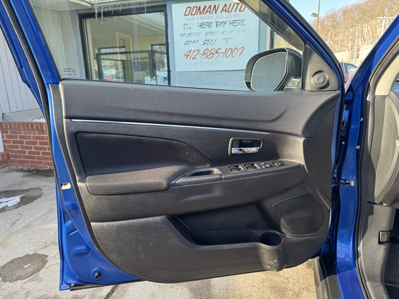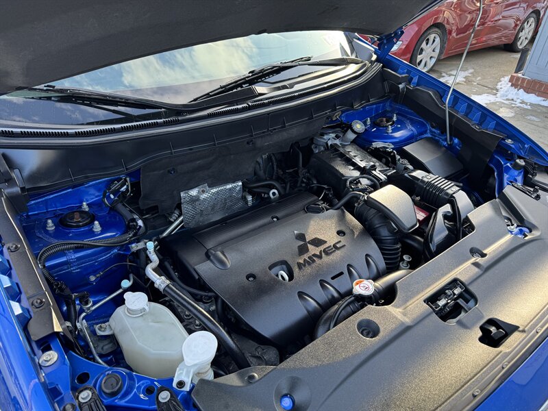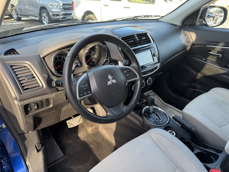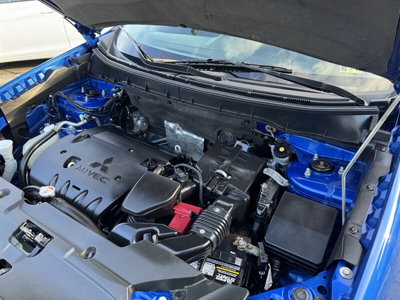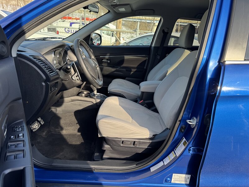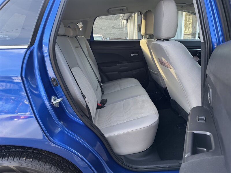 2015 Mitsubishi Outlander Sport 2.4 GT in Octane Blue Pearl with a Gray interior, powered by the factory 2.4L I4 producing 168 hp and 167 lb-ft — under 48,000 miles (averaging <4,000 miles/year) and EPA-rated at 23 MPG city / 26 MPG highway. Factory-equipped safety and chassis features include anti-lock brakes (ABS), electronic stability and traction control, front-seat side-impact and side-curtain airbags, and tire pressure monitoring. Convenience and tech features include power windows and door locks, remote keyless entry, cruise control, steering-wheel-mounted audio and phone controls, Bluetooth hands-free phone and audio streaming, USB/AUX inputs and an AM/FM audio system. Comfort and practicality items include air conditioning, 60/40 split-folding rear seats for expanded cargo versatility, exterior alloy wheels, intermittent wipers and heated side mirrors.