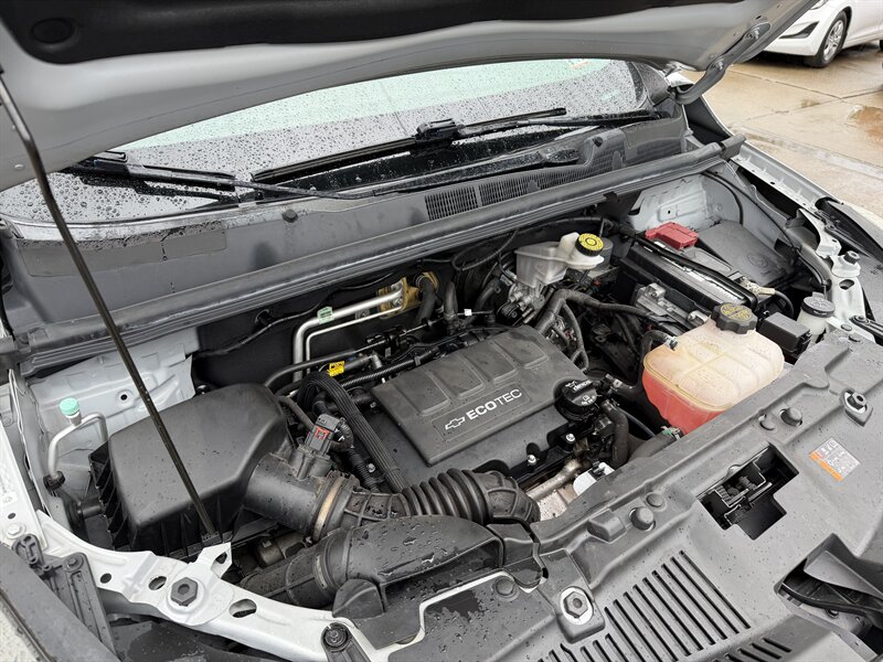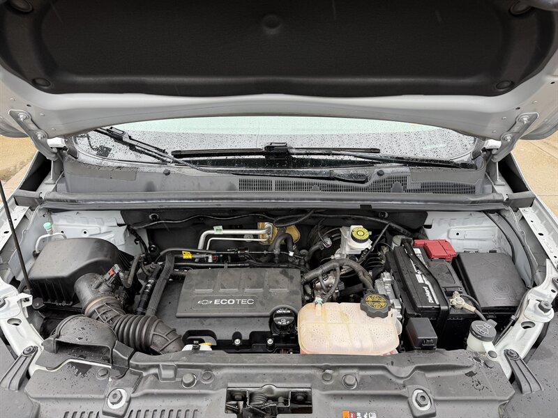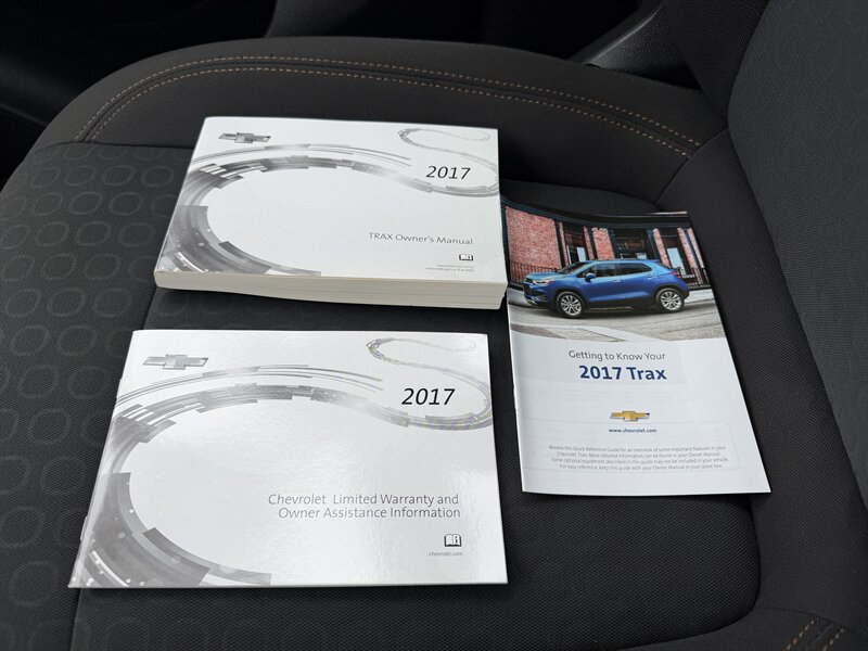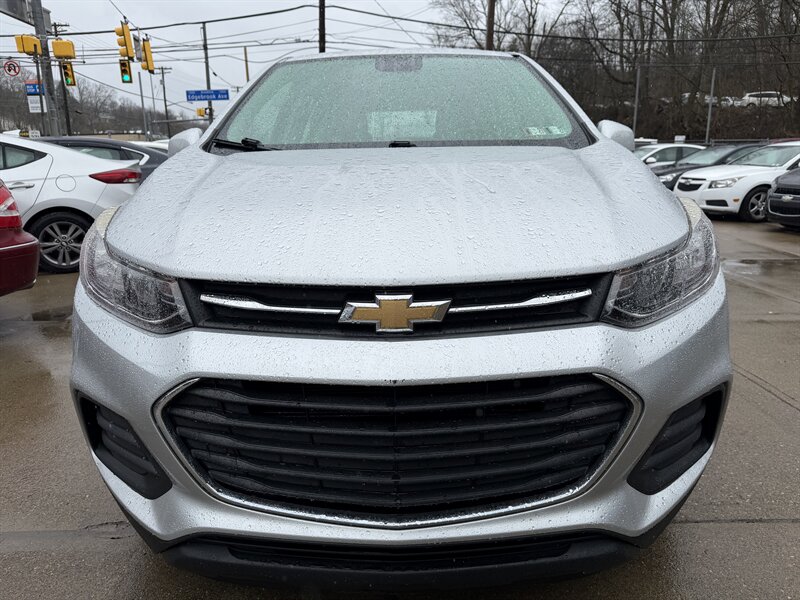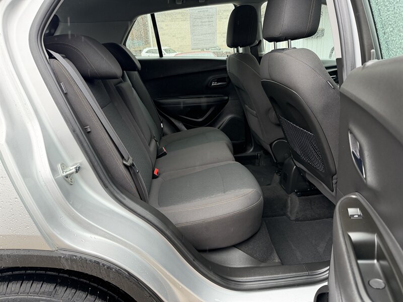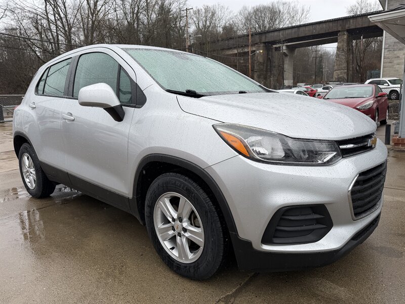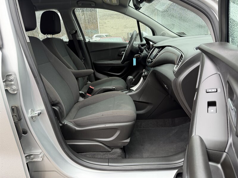 2017 Chevrolet Trax LS in Silver Ice Metallic with Jet Black cloth interior, powered by a 1.4L Ecotec Turbo I4 (138 hp, 148 lb-ft) and an automatic transmission — front-wheel drive. Under 42,000 miles (averaging <5,000 miles/year) and EPA-rated at 25 MPG city / 33 MPG highway. Factory-standard equipment includes air conditioning, power windows and door locks, remote keyless entry, cruise control, tilt/telescoping steering wheel, 60/40 split-folding rear seats, Bluetooth hands-free and audio streaming, USB/auxiliary inputs and AM/FM audio, 16-inch steel wheels, and features such as ABS, stability/traction control.
